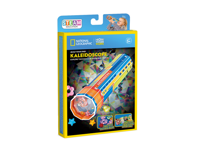 The National Geographic Kaleidoscope is a hands‑on STEAM building kit designed to introduce children to the fascinating world of light, colour, and optical science. Through an engaging assembly process, young creators construct their own working kaleidoscope, allowing them to observe mesmerising symmetrical patterns formed by colourful beads.